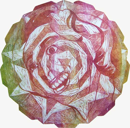 HILARY SCREAMS, 1994, ø 50 cm woodcarving, 450 €