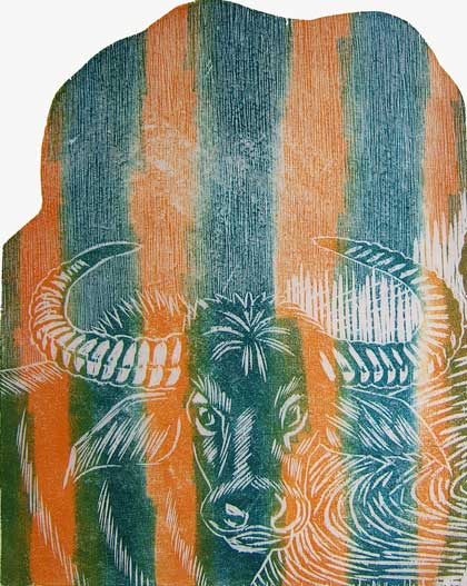 WATERBUFFALO, 1994, 32 x 41 cm woodcarving, sold