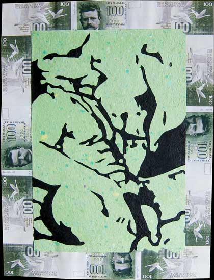 HONEY, 1999, 27 x 36 cm acrylic + handmade paper + print, 191 € • Next>>>